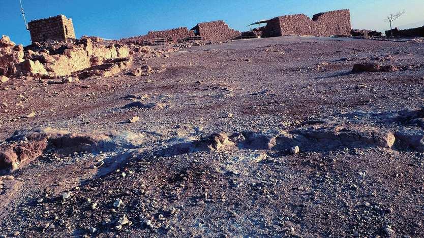 希律王为自己享乐和防身所度身而做的宫殿,成了犹太教徒顽强抵抗的最后据点。他们在山顶各个地方修筑工事,建造生活设施;把王室住宅分隔成很多小房子,挤住了很多人;还养了鸽子,主要是为了通讯联络;还养了鸡,那是为了改善生活。他们还造了犹太会堂、议事大厅……总之政治、军事、生活设施,一应俱全。